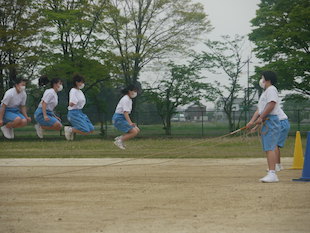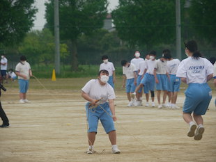 3年生による「みんなでジャンプ」では、初めての練習だったので、クラスによってはなかなかうまくいかないところもありましたが、息を合わせ、1回ずつ回数を増やすことができました。回数が増えていく毎に数を数える声がひとつになり、大きくなっていく、、、心がひとつになっていくのがわかる光景でした。