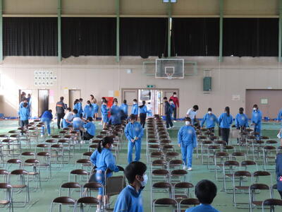 本日は、飯沼中学校を会場に川辺小学校、中野小学校の代表の生徒が集まり、スーパー元気さわやか集会が開かれました。スーパー元気さわやか集会は、みなが安心で元気な学校生活を送れるよう、いじめを許さない土壌づくりをおこなうために、意見交換をおこなう会です。本日は、「あいさつ」「ことばづかい」「時間を守る」という3つのテーマで話し合いをしました。それぞれの学校で話し合った内容を持ち寄り、意見交換を行いました。最初にアイスブレイクとして本校伝統のラベンダー体操をみんなで踊りました。緊張がほぐれたところで意見交換を開始しました。みんなが活発に意見を交換し、有意義な時間となりました。