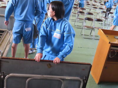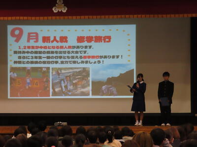 本日は、2学期終業式を明日に控え、各学年が学年集会を行いました。各学年とも代表の生徒が2学期を振り返り発表をしました。その後、1年生は各クラスのよかったこと改善したいことを寸劇形式で発表しました。2年生は、学年の取組への表彰をしました。3年生は各クラスのMVPを発表して表彰をしました。どの学年も暖かな雰囲気の中、学年集会が行われました。あと1日で2学期が終わりますが、今日の振り返りを大切に冬休みを過ごし、3学期を迎えてほしいと思います。