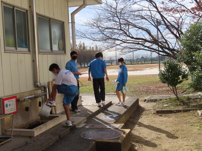本日で年内の部活動は終了となります。今日は練習終了後に校庭には塩化カルシウム(にがり)を撒き、体育館はワックスがけを行いました。お世話になった活動場所を心を込めて整備します。大切な心ですね。