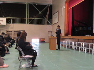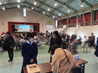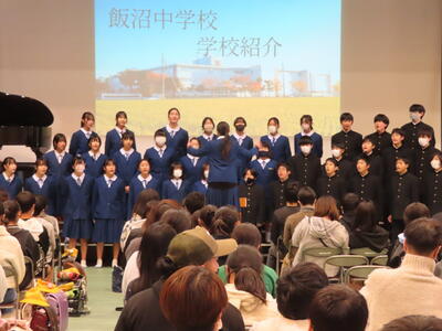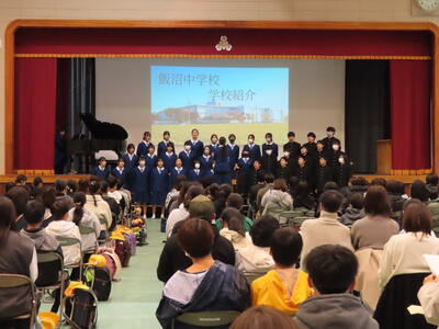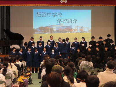 本日は、令和6年度に飯沼中学校に入学予定の児童とその保護者を対象とした入学説明会が行われました。前半は、児童、保護者合同で、生徒会による飯中の行事や1日の過ごし方、部活動などの紹介がありました。また有志生徒による校歌の紹介がありました。後半は、児童は教室に移動してテスト、保護者は引き続き説明会が行われました。入学予定の児童とその保護者のみなさま、本日はご来校ありがとうございました。飯沼中学校職員、生徒一同みなさんの入学を楽しみにしています。