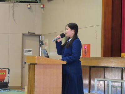 本日は2学期の終業式でした。まず代表生徒による2学期の振り返りの発表がありました。どの生徒も自分たちの成長できたこと、これからの課題としっかりと振り返ることができていて、来年が楽しみになりました。校歌を全員で歌ったあと、校長の式辞がありました。校長からは2学期の振り返りと「一陽来復」についての話がありました。終業式の後は、職員による冬休みの生活と安全についての話と表彰がありました。今回の表彰者はのべ75名となります。今学期も飯中生が活躍をしました。