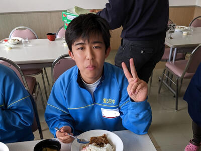 スキー教室で最後の食事となりました。