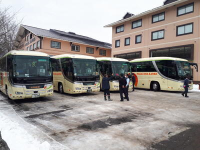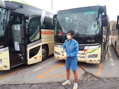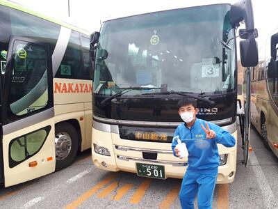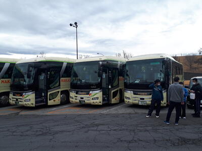 帰りのバスが到着し、乗車を開始しました。まもなく出発予定です。