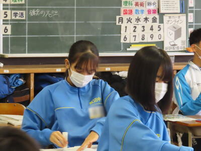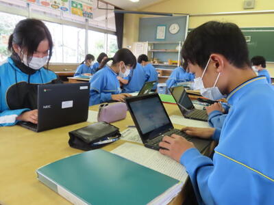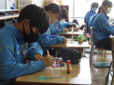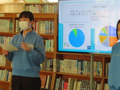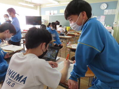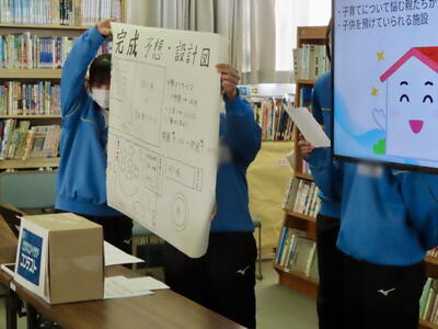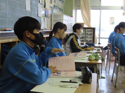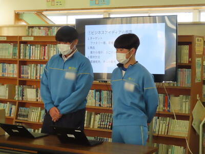 3年生は、家庭科と社会科の横断的な学習として飯中ビジネスアイディアコンテストを行いました。地域サポーターのナオナ様を指導者に迎え、各グループがビジネスアイディアをプレゼンしました。それぞれが趣向を凝らした地域活性化のビジネスアイディアを紹介していました。