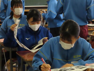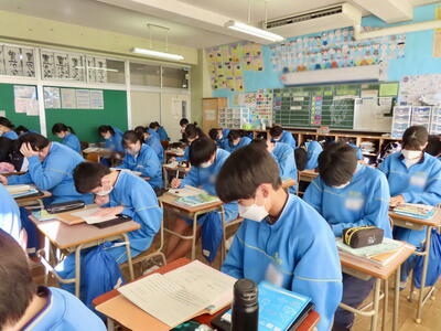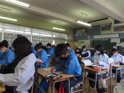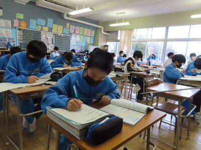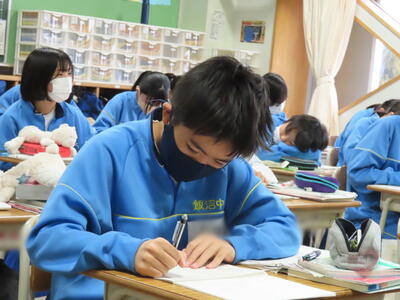 ようやく全学年がそろい、活気のある飯沼中が戻ってきました。全学年が集まるとやはり学校は元気になります。2年生もスキー教室の疲れなど感じないくらい元気に活動をしていました。3年生は、今日入試の人もいて空席もありましたが、残っている生徒は相変わらず真剣な表情で授業に臨んでいます。