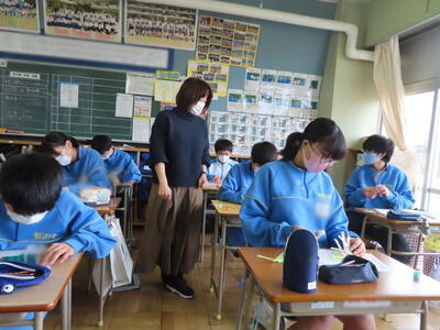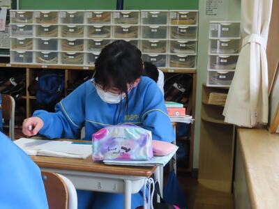 2年生は、定例スペリングコンテストを行っていました。実施後に教室を回りましたが、皆ががんばったようで晴れ晴れとした顔をしていました。「満点を取った!」という声や「1問だけミスしちゃいました!」という声が聞こえてきました。みなさん、よくがんばりました。
