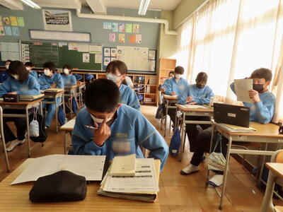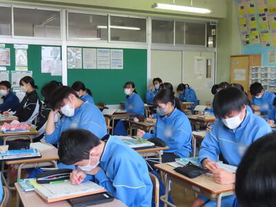 3学期が始まって1週間が過ぎました。3年生は、県内私立の入試集中日を翌日曜日に控え、授業を受ける表情にも真剣さが増します。明日も千葉県の私立入試があり、いよいよ受験期に本格的に突入しました。勉強も大切ですが、これからはまずは健康。体調管理に留意し、万全の状態で試験に臨んでほしいと思います。いつも応援しています!