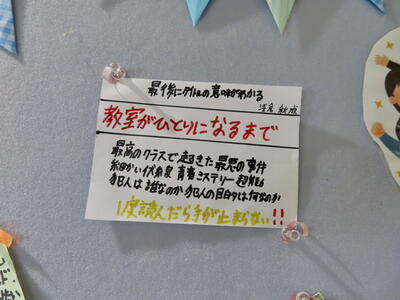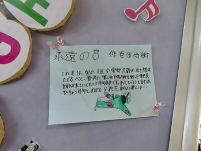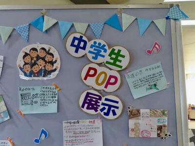 現在、庄和図書館では、「中学生POP展示」を行っていて、本校図書委員の作品が紹介されています。「POP」とは、Point of purchase advertising の略で、本の紹介を書いたカード状の掲示物です。POPには本の名前や特徴、イラスト、説明文などが書かれ、実際に手に取って読んでもらえるように工夫を凝らします。キャッチ・コピーという印象的なことばが添えられることが多いです。図書委員のみなさんも、できるだけ多くの人に本を手に取ってもらおうと一所懸命に制作しました。お近くにお寄りの際は、ぜひご覧になっていただければと思います。図書委員のみなさん、Good Job!