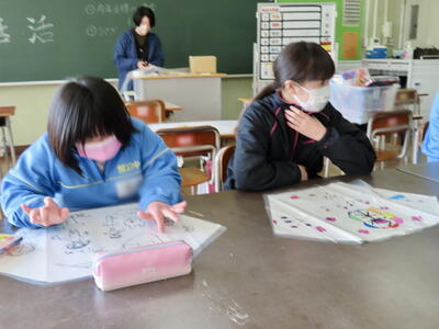 1年生は、来月に控えている鎌倉ウォークの事前学習をしていました。本日は、鎌倉の歴史とともに神社仏閣について調べていました。そして5・6組は、オリジナルのたこづくりをしていました。思い思いの絵をたこに描きます。