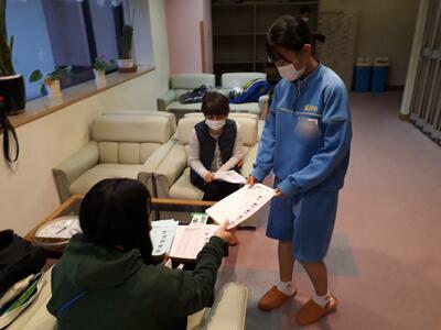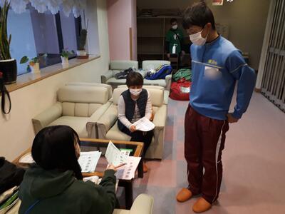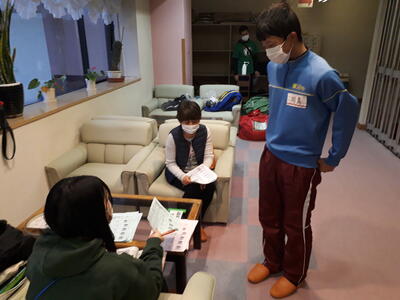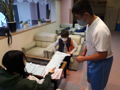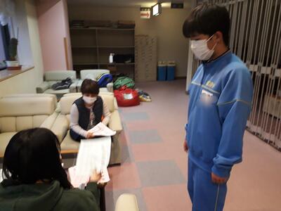 部屋ごとに健康観察をして、養護の先生や看護師さんに報告をしています。
