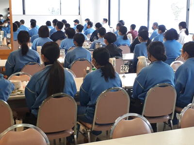 食事後に連絡事項を聞く際にも、とても良い姿勢です。すばらしいです。