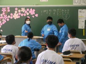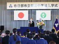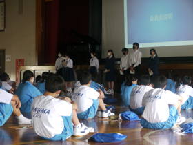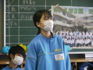みなさんは、今日からチーム飯沼のメンバーです。力を合わせ、飯沼中学校の歴史と伝統に新たな息吹を吹き込んでいきましょう。それぞれが目標を持って学校生活を送り、自身の夢の実現に向け、熱く、一所懸命になれる三年間としてください。