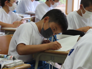 生徒は、連日続いている体育祭の練習とは別のもうひとつの引き締まった表情で真剣に受検していました。自身の学力の伸びを確認するとともに様々なデータを知ることで、今後の学習に役立ててほしいと思います。そして、自ら気づき、考え、方策を考え、解決していくことのできる力を身につけてほしいと思います。