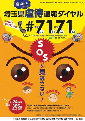 | 「虐待ゼロ推進月間」である7月に、埼玉県虐待通報ダイヤル♯7171の周知をはじめ、虐待防止にかかる広報・啓発を行うことで、あらゆる虐待のない社会を目指します。 |