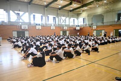 体育館にて、全校生徒で生徒総会を実施しました。