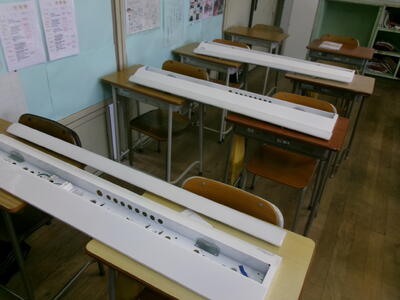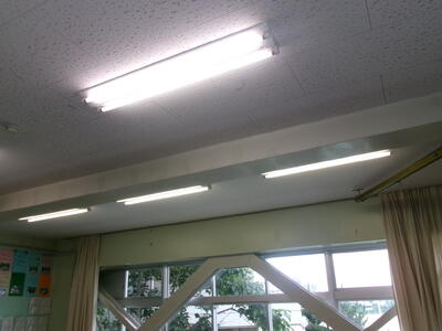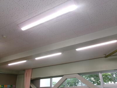3年生の教室の照明を、蛍光灯からLEDに代える工事を実施し、完了しました。