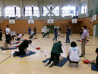 また、放課後には職員を対象とした、救命救急講習を実施しました。