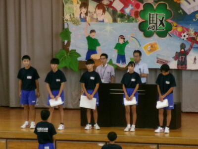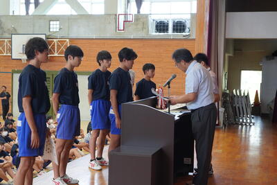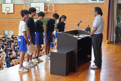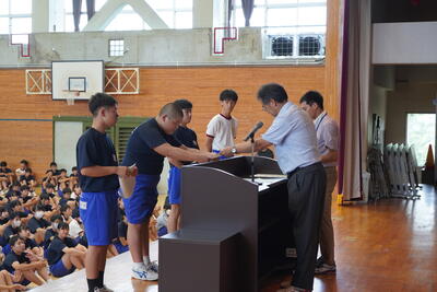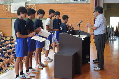 午後は学校総合体育大会の表彰集会を実施しました。県大会での活躍も期待されます。
