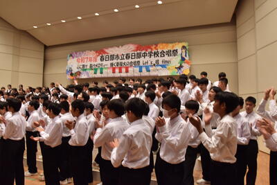 春日部中・東中・豊春中・緑中の4校の生徒が集まり、北ブロック地区交流会を行いました。
