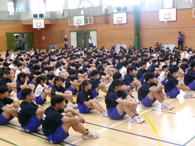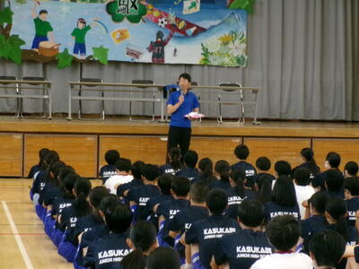 夏休みに向けて、各学年で集会を開き、1学期の振り返り、夏休みの注意点などを確認しました。