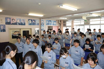 3年生の合唱練習です。画像では歌声が伝わりませんが、とても良いハーモニーが響いています。