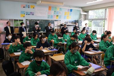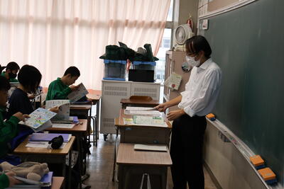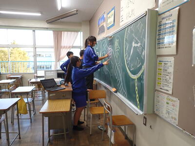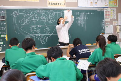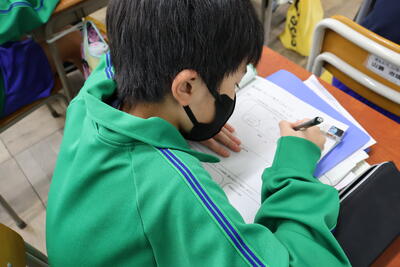 1年4組で技術科の研究授業を行いました。多くの先生に参観いただきながら、生徒たちも大変がんばりました。
