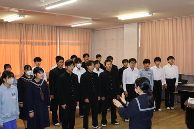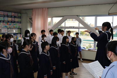 放課後の合唱練習の様子です。短時間で集中して取り組んでいます。