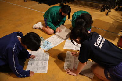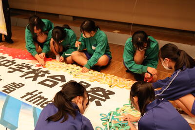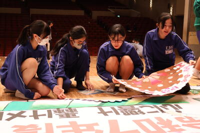 合唱祭を華やかに彩るスローガンの横断幕は、美術部の皆さんが製作してくれました。完成した横断幕は、明日の会場でお披露目です。どうぞお楽しみに。