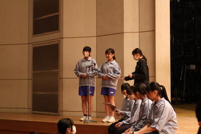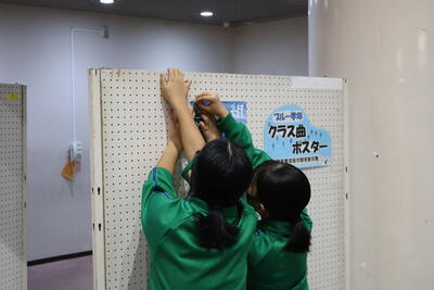 明日の合唱祭に向けて、実行委員が会場に集まり、アナウンスやスピーチの練習、ポスターの掲示などの準備を行いました。