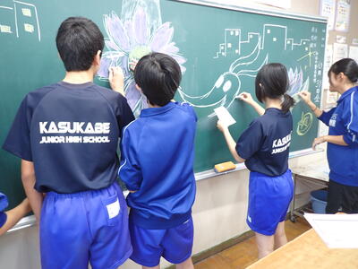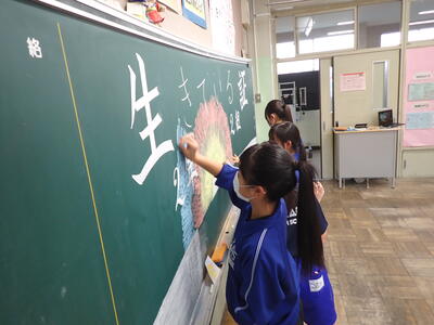教室では、明日の合唱祭を盛り上げる黒板アートを描いています。こちらもどんな仕上がりになってるか楽しみですね!