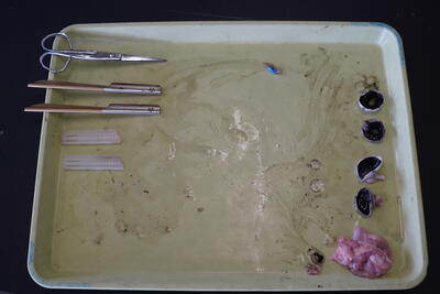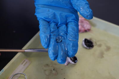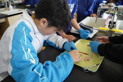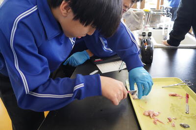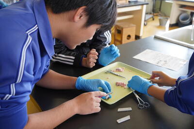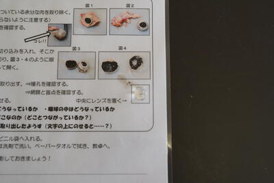 「動物のからだのつくり」についての学習で、ブタの目を解剖していました。