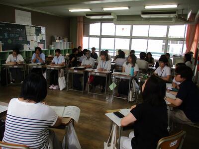 本校会場に近隣の小中学校の先生方が集まり、合同の研修会が行われました。講師の先生を招いての講演の後には、テーマごとに分かれての意見交換の場も持たれました。午前中の時間のみの研修ですが、充実した時間となりました。