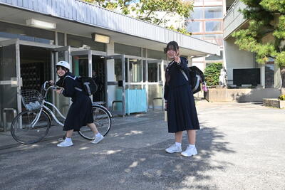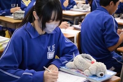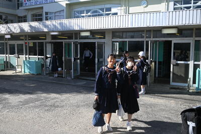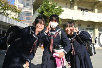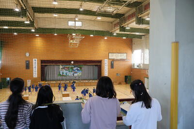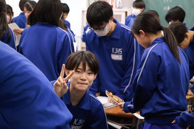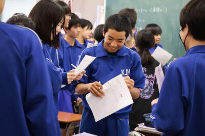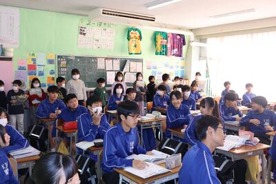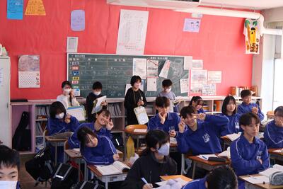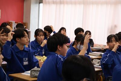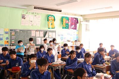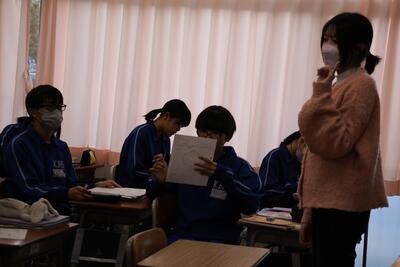 先輩方の授業を見学したあとは、本校の生活についてクイズ形式で説明させていただきました。