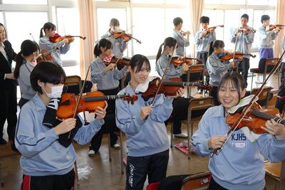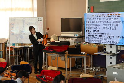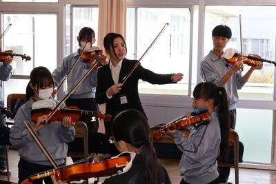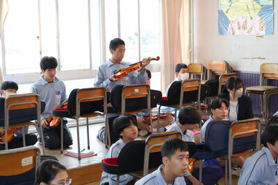 音楽の授業では、研修生の研究授業を行いました。