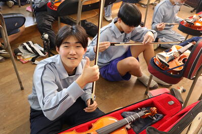 日常的にバイオリンに触れることはないと思います。とても慎重にバイオリンに触れていましたね。