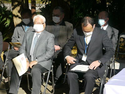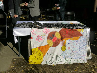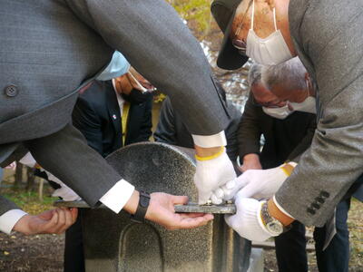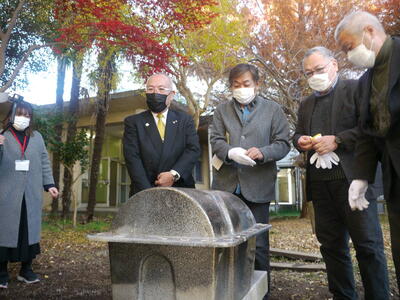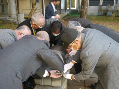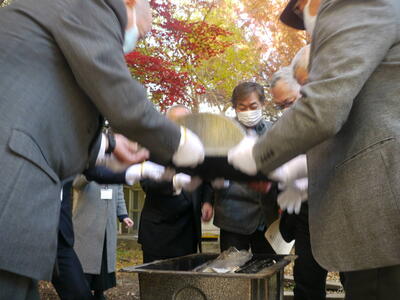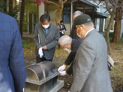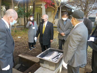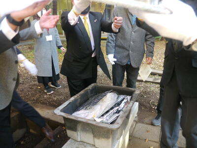コロナ禍の中、関係者のみの式典となりましたが、創立50周年時に記念事業として行なったタイムカプセルの開封式を行いましたので、その時の様子をご紹介します。