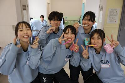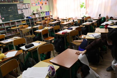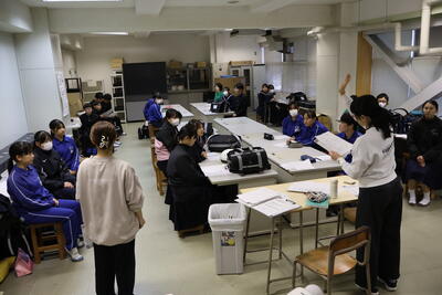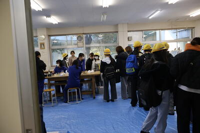 生徒には事前に避難訓練があることを知らせずに、緊急地震速報を放送した訓練を実施しました。