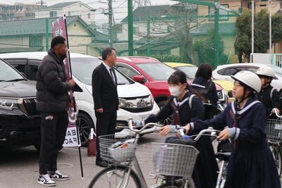 あいさつ運動を展開しています。本日は本校にお越しくださいました。