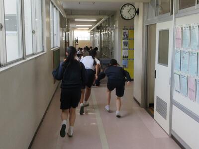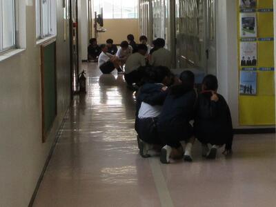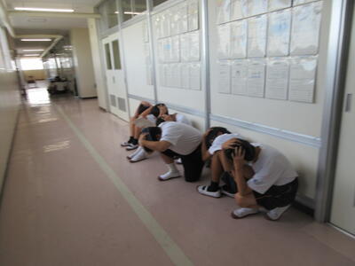 今週は、シェイクアウト訓練期間ということで、予告なしで地震発生時の安全確保の訓練を何回か行っています。本日は昼休み中に実施しました。素早い行動と静かな待機行動ができていました。