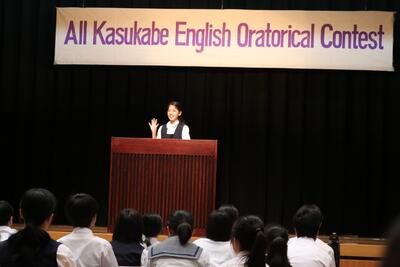 本日、春日部市教育センターにおいて、市内英語弁論大会が実施されました。本校からは、3年生の女子生徒2人が参加しました。1人は留学体験について、もう1人は学校の給食について、堂々と発表できていました。美味しい給食の裏側で、調理している人たちの苦労についての話は、感動的でした。