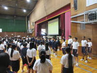 18日(金)に終業式が行われました。校歌斉唱、各学年からの1学期の反省と2学期に向けての発表、校長先生・生徒指導主任からの話、そして表彰がありました。学総や硬筆などの表彰が今回もたくさんありました。おめでとうございます。(掲載が遅くなりました)