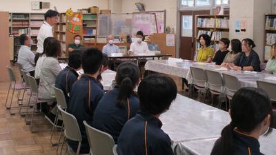 本日5校時目に、第1回学校保健委員会が図書室で行われました。校医の先生方や保護者の方々に、定期健康診断や新体力テストの結果についての説明を行いました。また、3年保健委員会から「睡眠について」のアンケート結果等の発表がありました。保護者からの質問にも保健委員の生徒はしっかり答えていて、健康について意識して生活しているとも答えていました。その後、校医の先生方からご指導、ご助言をいただきまして、歯科医の先生からは、睡眠不足が歯にも影響するとの説明もあり、大変勉強になりました。ご多用の中、ご来校いただきました、校医の先生方、保護者様ありがとうございました。
