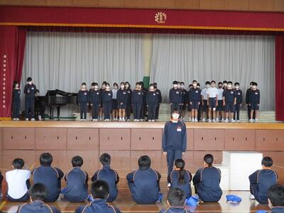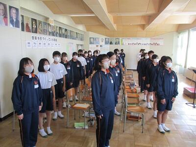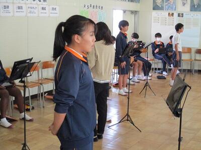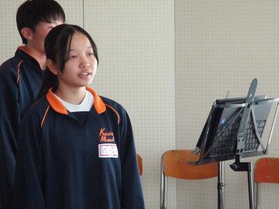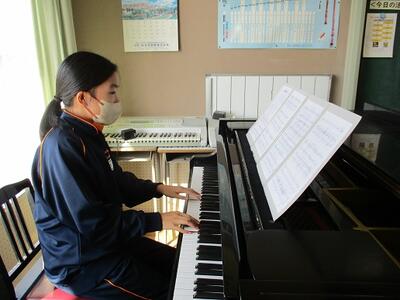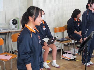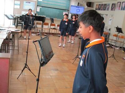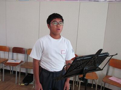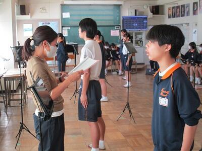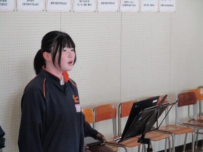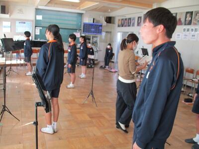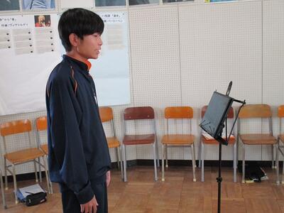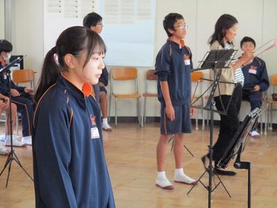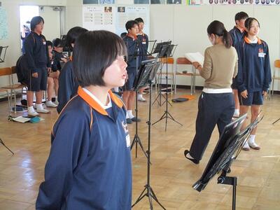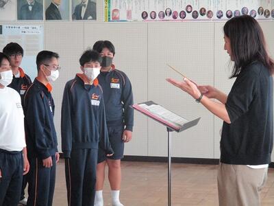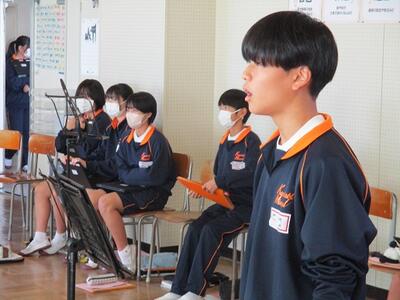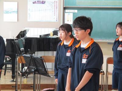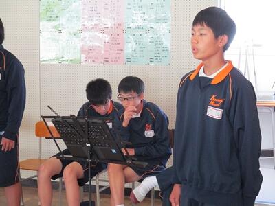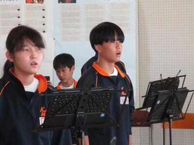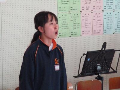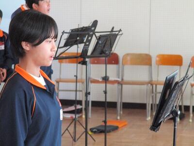 音楽室に行ってみると、明日行われる市内音楽祭に向けて、本校代表の3年生のクラスが仕上げの練習をしていました。心が震えるほど素敵な合唱でした。