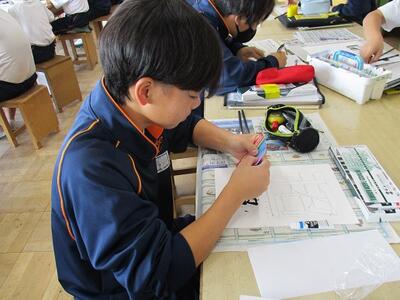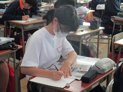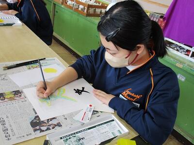 部活動終了後に、お世話になった人への年賀状書きや冬休みの出題をしている生徒がいました。南中生は、冬休みもしっかり頑張っています。