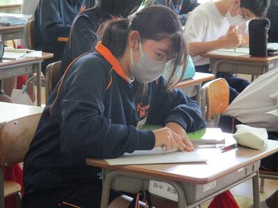 2年生は、3時間目から総合学力調査(国語、数学、英語)を行いました。