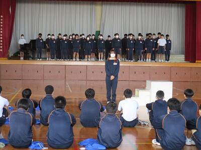 本日、帰り会終了後に校庭で「創立5周年記念事業」を行いました。