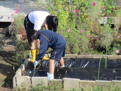 本日の放課後の時間に、1、2年生のボランティアによるチューリップの球根植えを行いました。