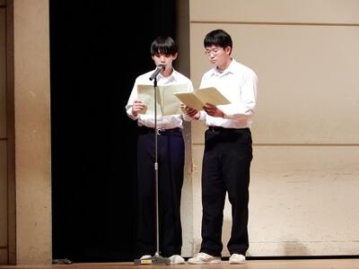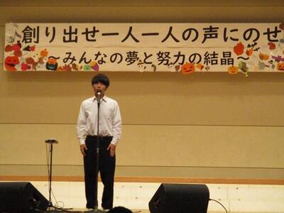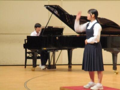 クラス合唱、学年合唱、有志合唱、そして山下伶さんの演奏。