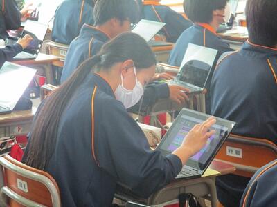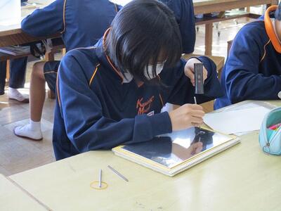 今日から音楽の時間は、タブレットを活用しての歌のテストになりました。
